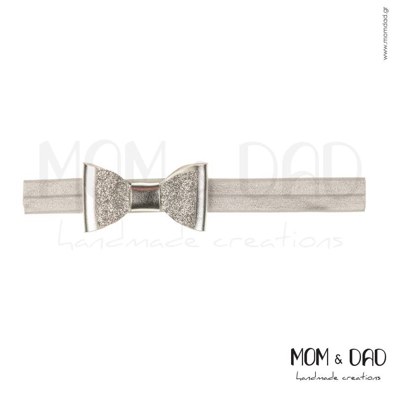 Δερμάτινος Φιόγκος Μεταλλιζέ με Glitter σε Κορδέλα Μπεμπέ Λάστιχο για τα Μαλλιά